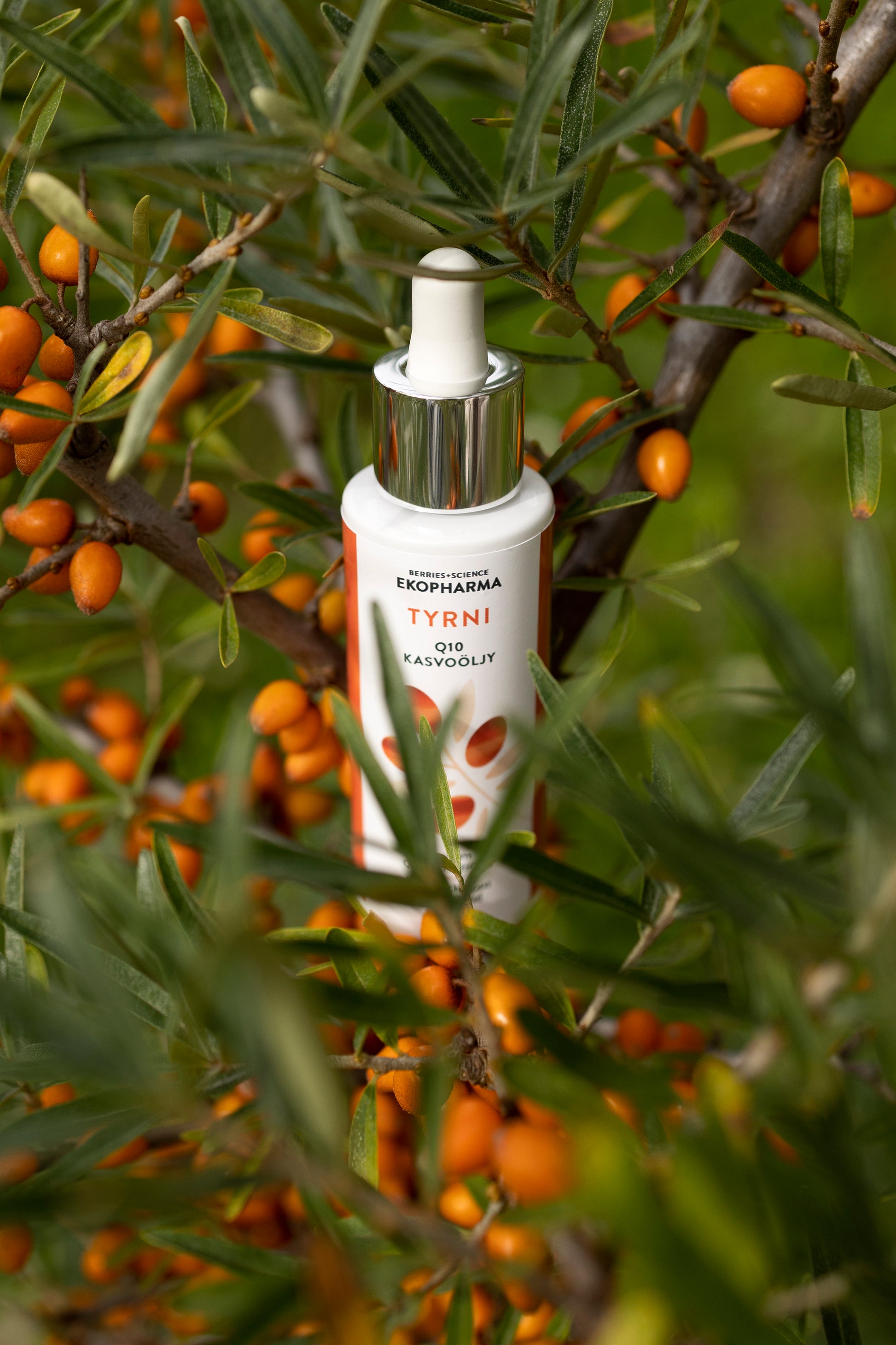 Ekopharma Tyrni Q10 hoitoöljy on energisoiva tehoaine aikuiselle iholle. Q10 virkistää ja suojaa ihoa stressiltä sekä ihon valovanhenemiselta. C-vitamiini kirkastaa ja tukee ihon uusiutumista. Tyrni- ja ruusunmarjaöljyt sisältävät runsaasti ihoa suojaavia ja välttämättömiä omega-rasvahappoja sekä tyrnin siemenöljy vahvistaa ihon vastustuskykyä, suojaa ihosoluja sekä vähentää ihon stressireaktioita.